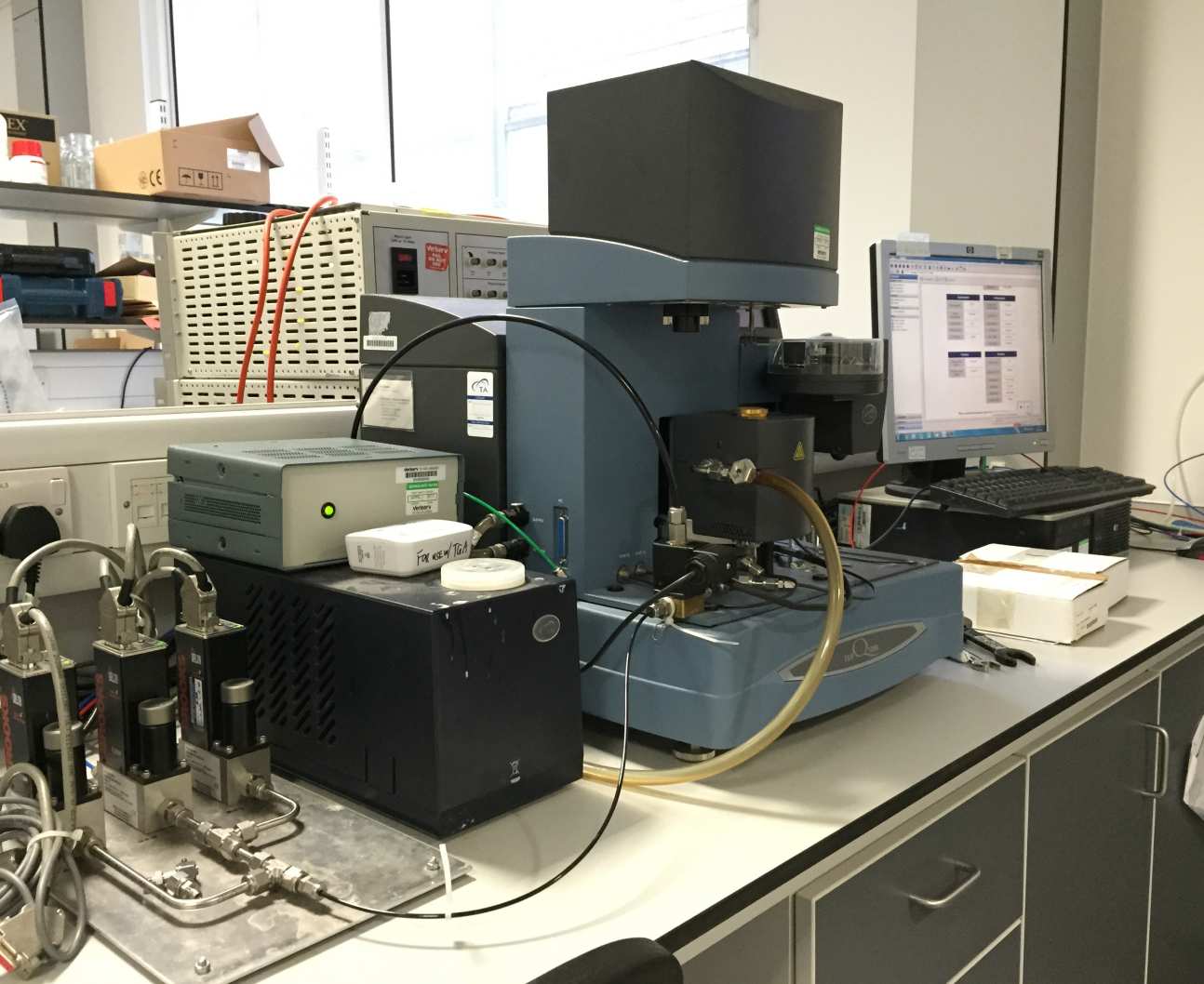 TGA with controlled gas atmosphere for thermal analysis, thermochemical reaction analysis, available in Prof. Paul Fennell's lab.