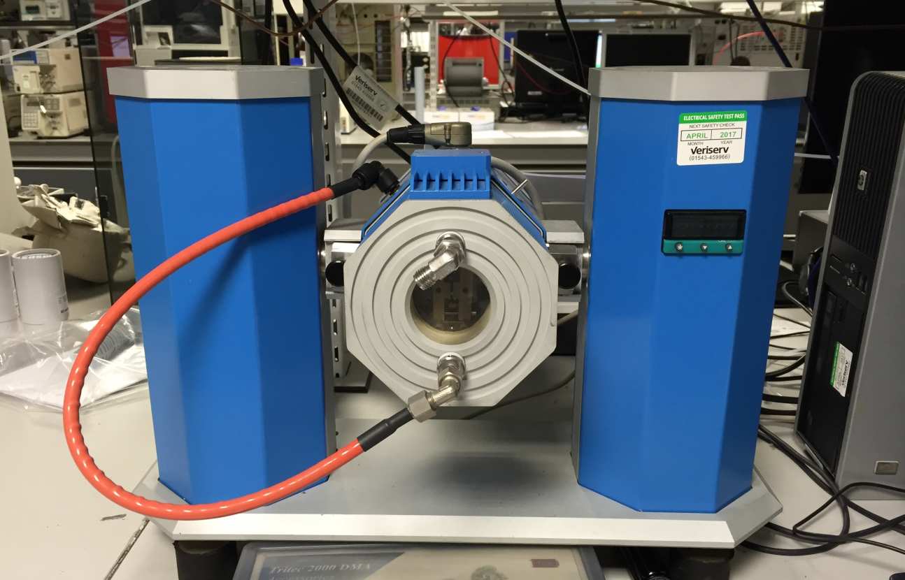 DMA analyser for mechanical properties and studying glass transition temperature of polymers. Analytical lab.