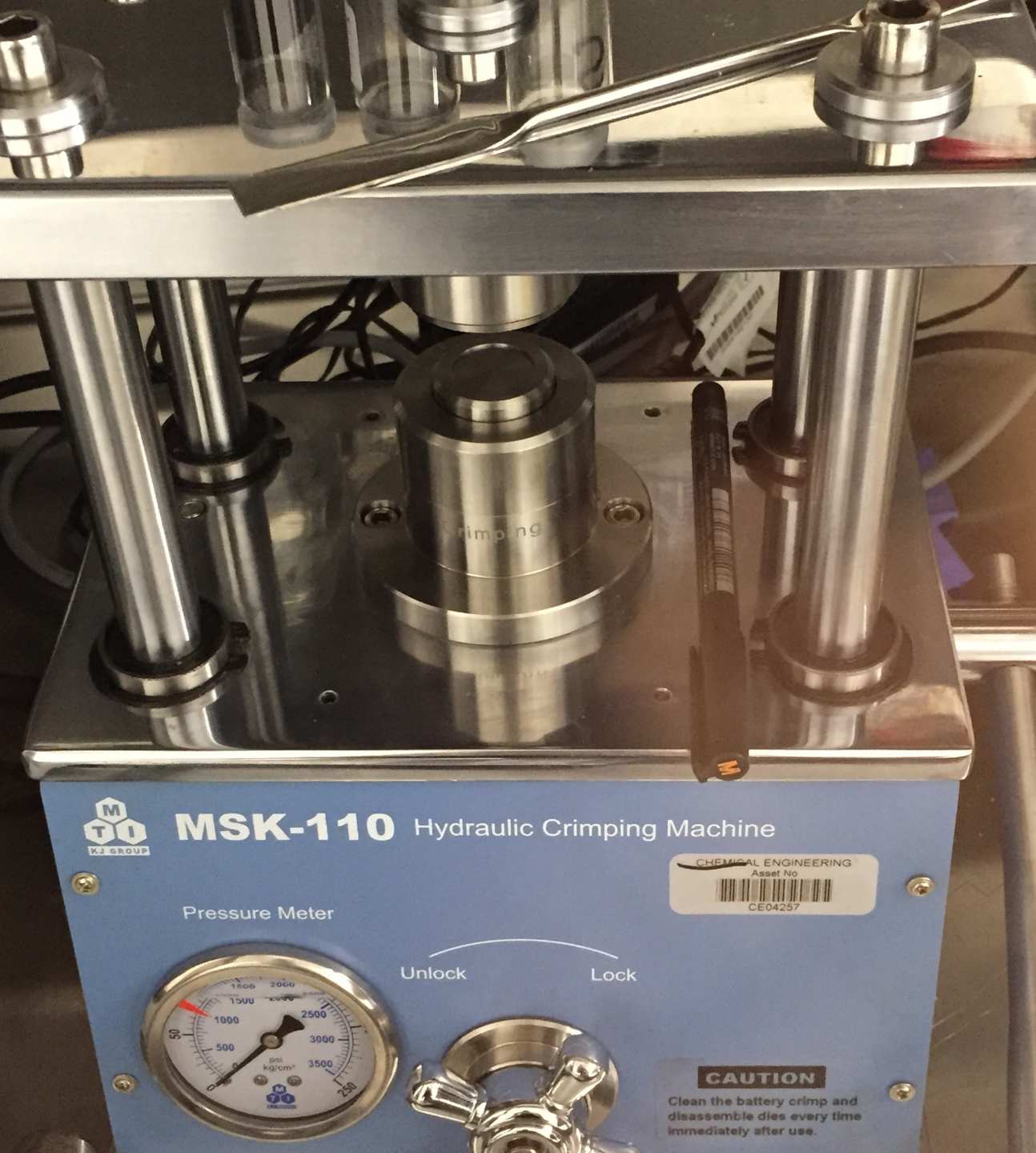 Hydraulic crimping machine for coin-cell battery assembly and disassembly.