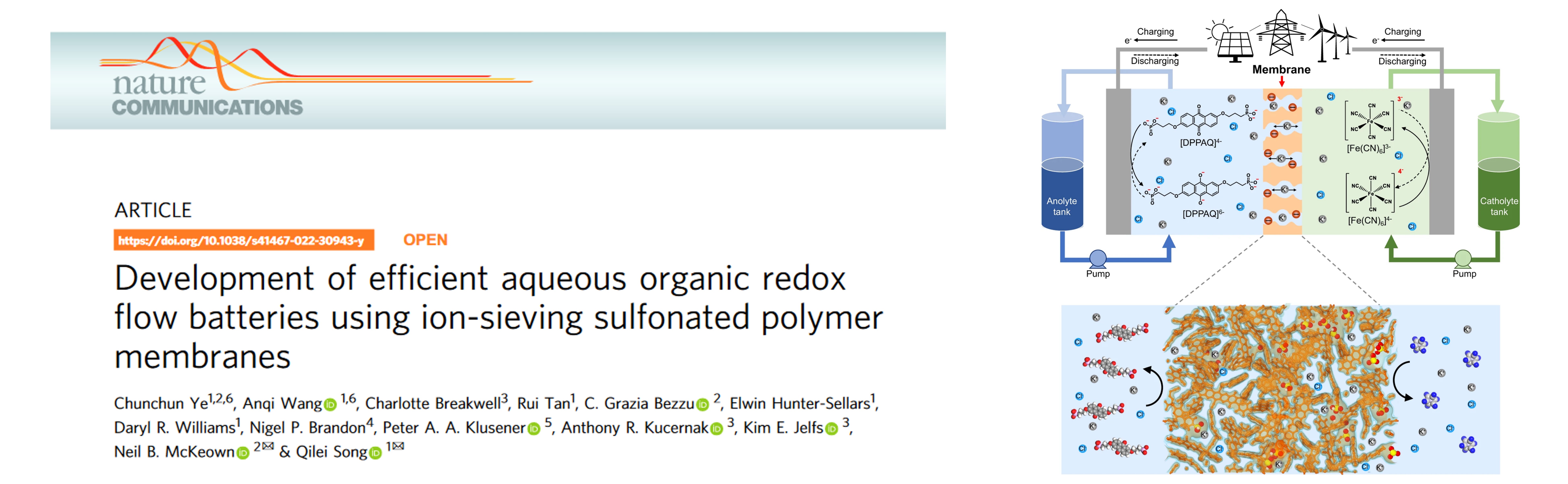 Dr Qilei Song is a co-author of one paper published in Joule, led by the group of Prof Xianfeng Li in Dalian Institute of Chemical Physics. The study reported roll-to-roll manufacturing of meter square-sized low-cost membranes and applications in kW-scale flow battery stacks, for long-duration energy storage.