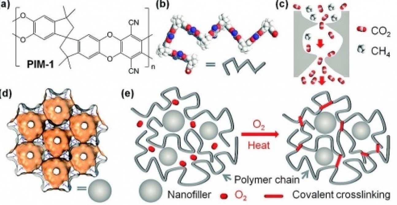 Here we report controllable thermal oxidative crosslinking of PIMs by heat treatment in the presence of trace amounts of oxygen. The resulting covalently crosslinked networks are thermally and chemically stable, mechanically flexible and have remarkable selectivity at permeability that is three orders of magnitude higher than commercial polymeric membranes.
