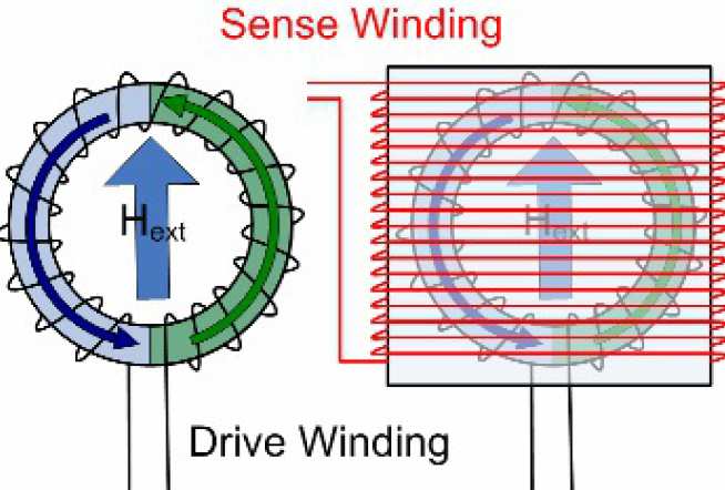 • A periodic bi-polar current pulse is injected into the drive winding to drive the material around its B-H loop and deeply saturating the core in alternate directions (i.e. magnetised - unmagnetised - inversely magnetised - unmagnetised - magnetised etc.).