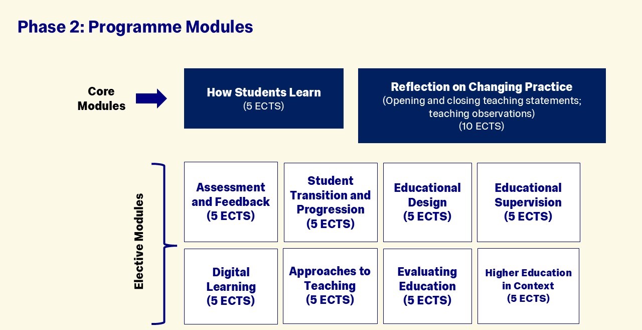 Students will attend two mandatory modules (How Students Learn and Reflection on Changing Practice – see more information on the ‘Programme Structure’ tab) as well as a minimum of three elective modules of their choice.