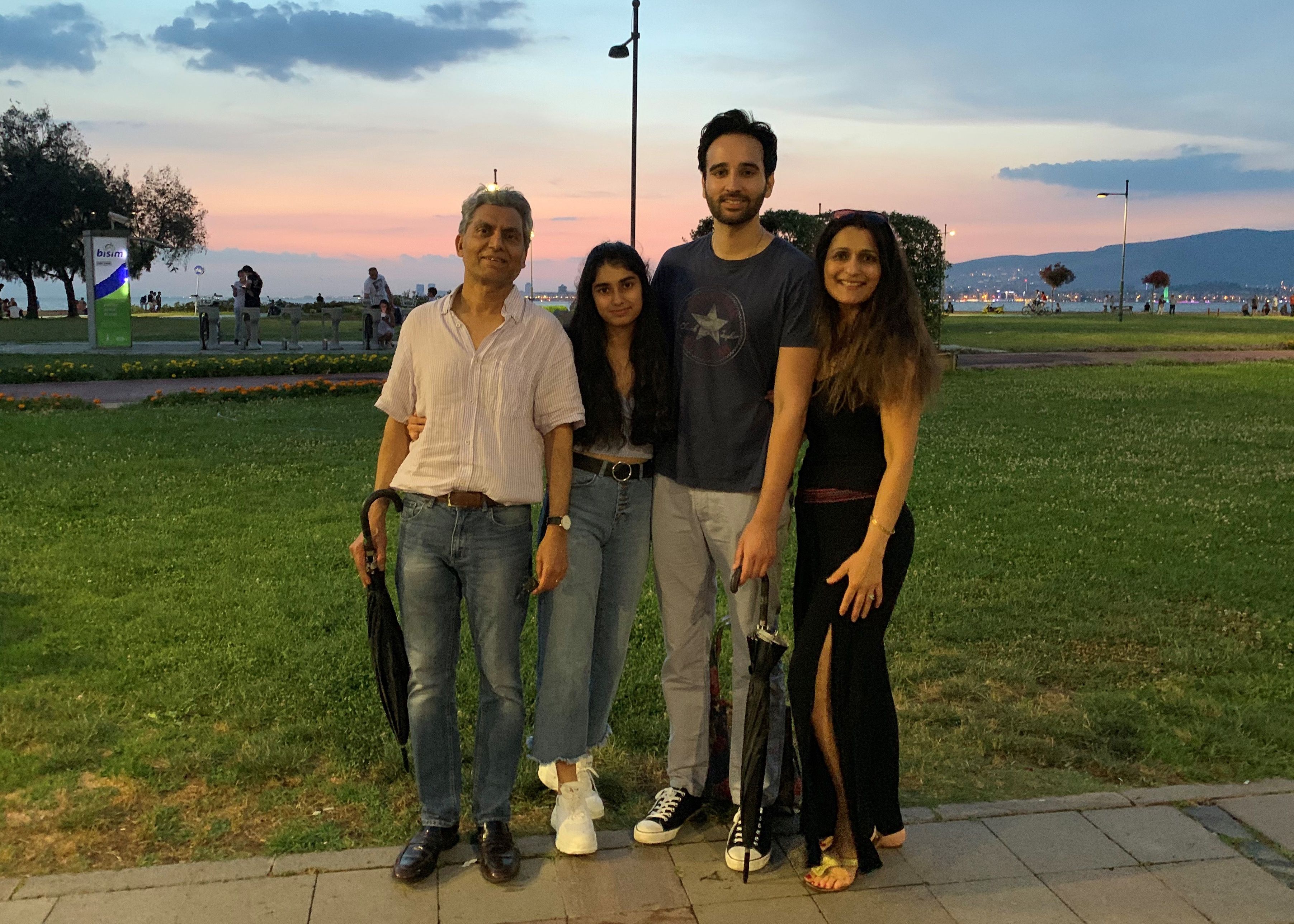 Azeem and his father, mother and younger sister in Izmir, Turkey