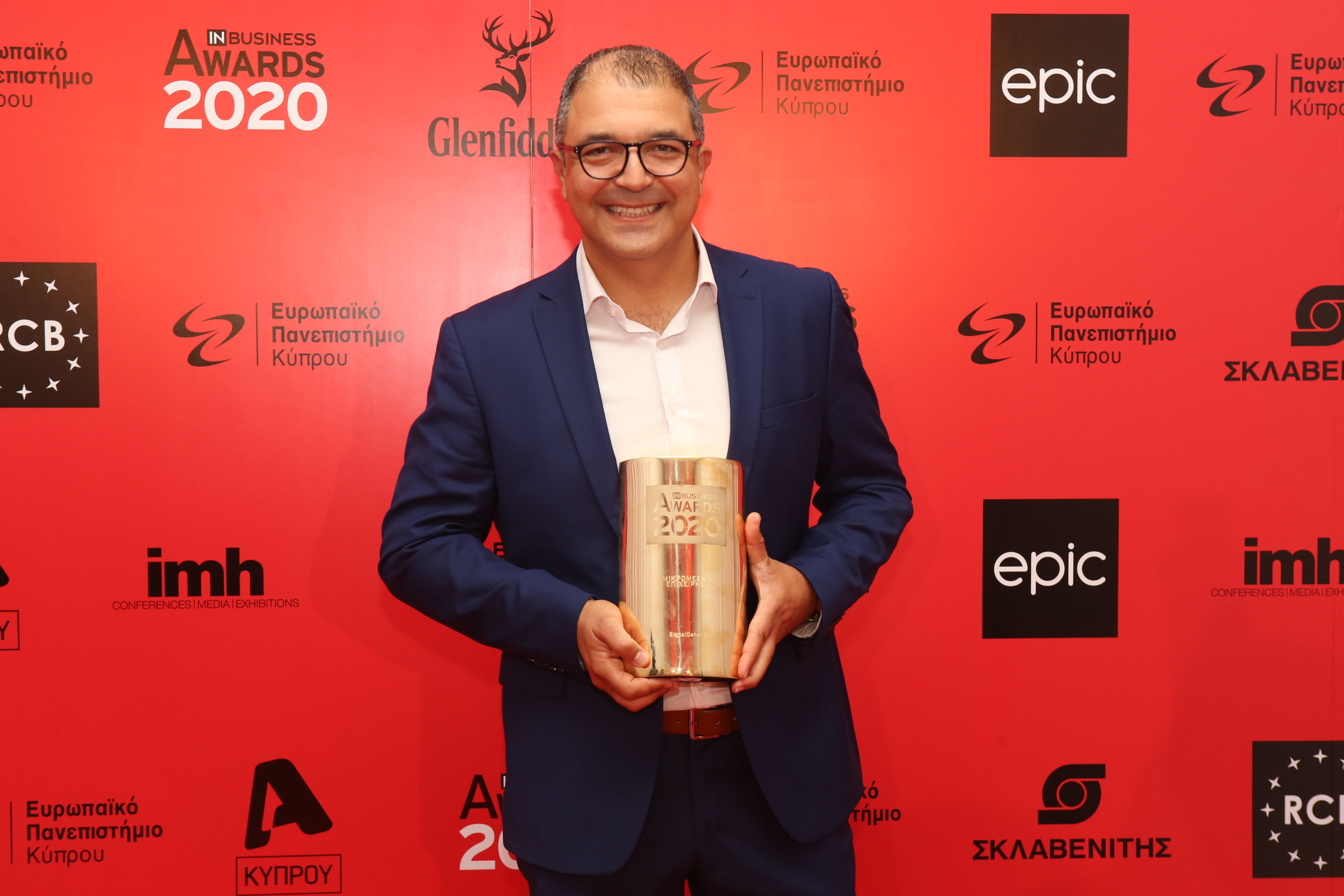 Tasos receiving the Best Cypriot SME Award 2020 on behalf of SignalGeneriX