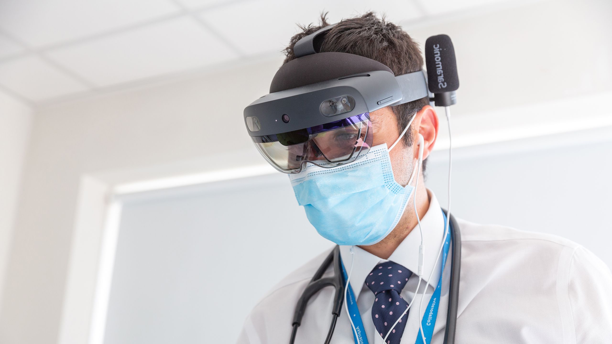 On the hospital wards, an Imperial-led project introduces mixed-reality headsets on COVID-19 wards to keep doctors safe as they help patients with coronavirus. Staff at Imperial College Healthcare NHS Trust wear the Microsoft HoloLens headsets which use Microsoft Teams to send a secure live video feed to a computer screen in a nearby room, allowing healthcare teams to see everything the doctor treating COVID-19 patients can see, while remaining at a safe distance.