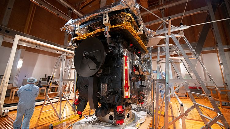 Before launch, as one of the final stages of testing, the spacecraft was placed in a unique facility run by German company IABG in a forest south of Munich to avoid interference with human-generated magnetic fields.