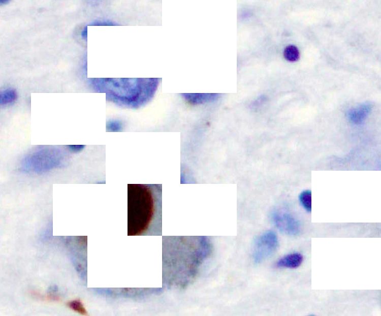 Alpha-synuclein stained brown in a Lewy body in the substantia nigra. Credit: Wikimedia images / Marvin 101.