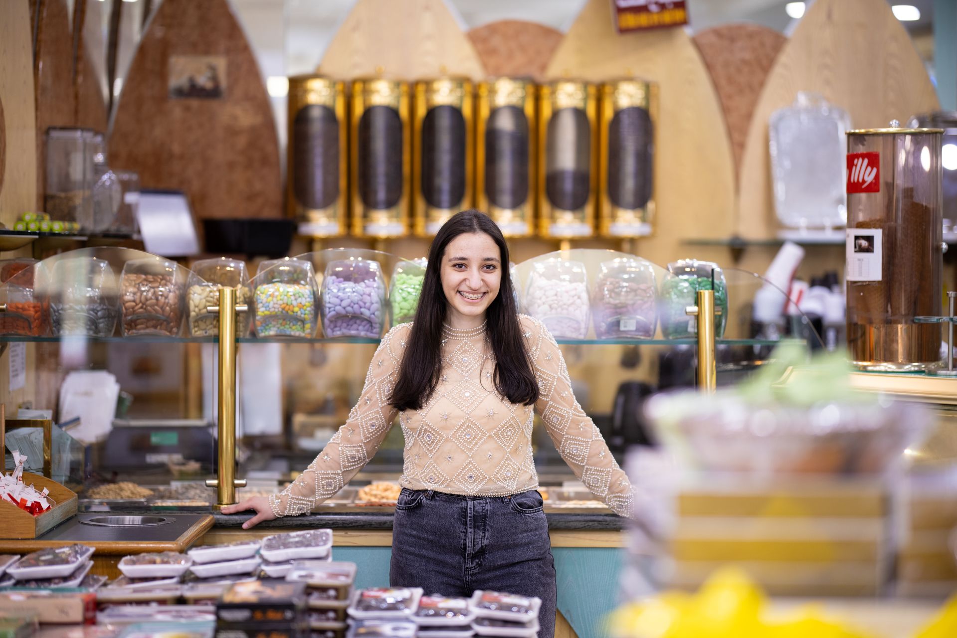 Fatima was photographed in Green Valley Deli on Edgware Road - a place she fondly remembers her mum buying food from when she was younger.