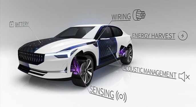 Structural battery composites comprising lithium iron phosphate coated carbon fibres and solid polymer electrolytes can be used to store energy in the structure of electric vehicles.