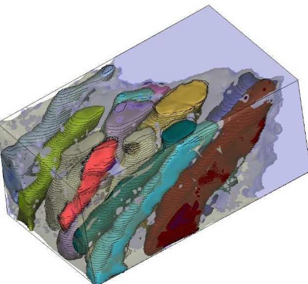 The brain is composed of two main types of tissues, namely grey and white matter. In this project, we focus on the latter, which is where glioblastoma is localised (i.e. where the EDEN system will infuse medication). The white matter is comprised of several types of cells and components which make it possible to theorise it as an anisotropic mechanical entity. Segmentation of the components from SEM images enables the 3-D reconstruction of the representative units to be modelled and then analysed via FEA.