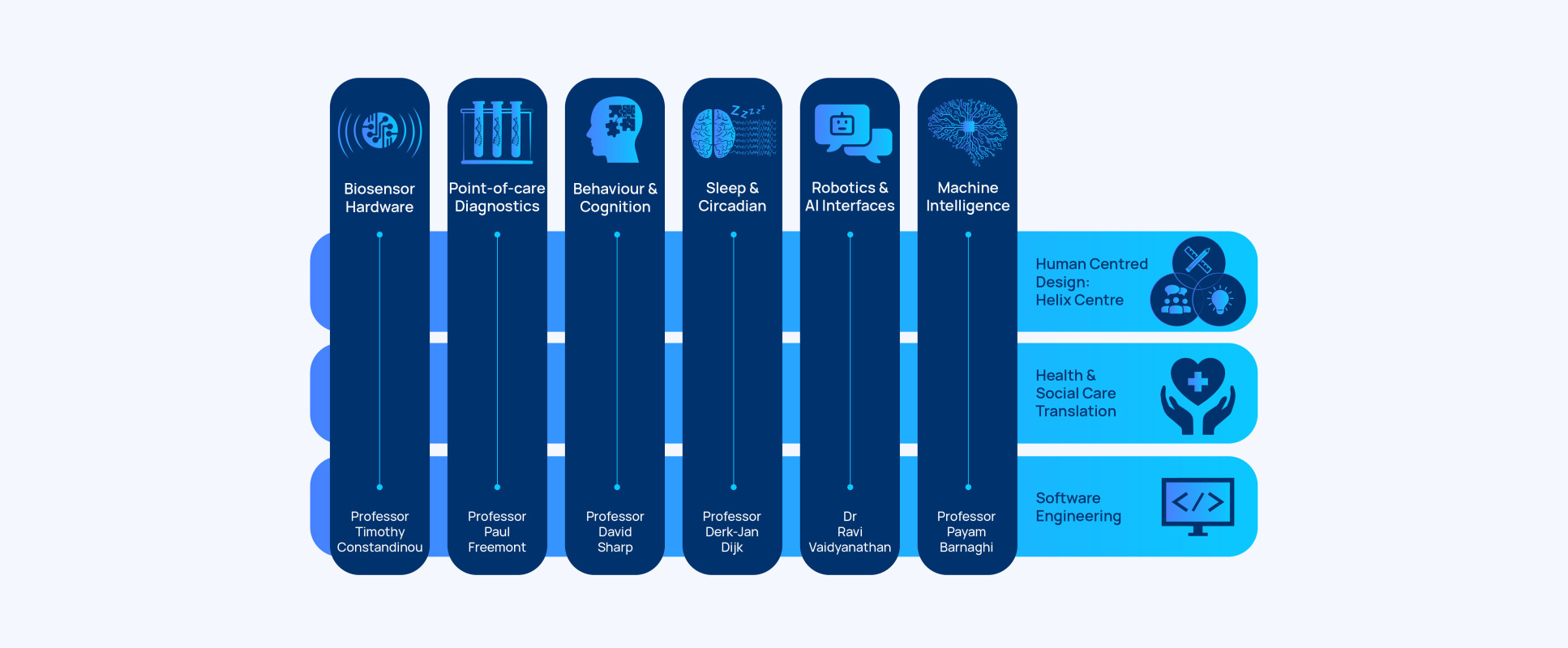 The UK DRI Care Research and Technology Centre currently has six core research groups with three cross-cutting themes.