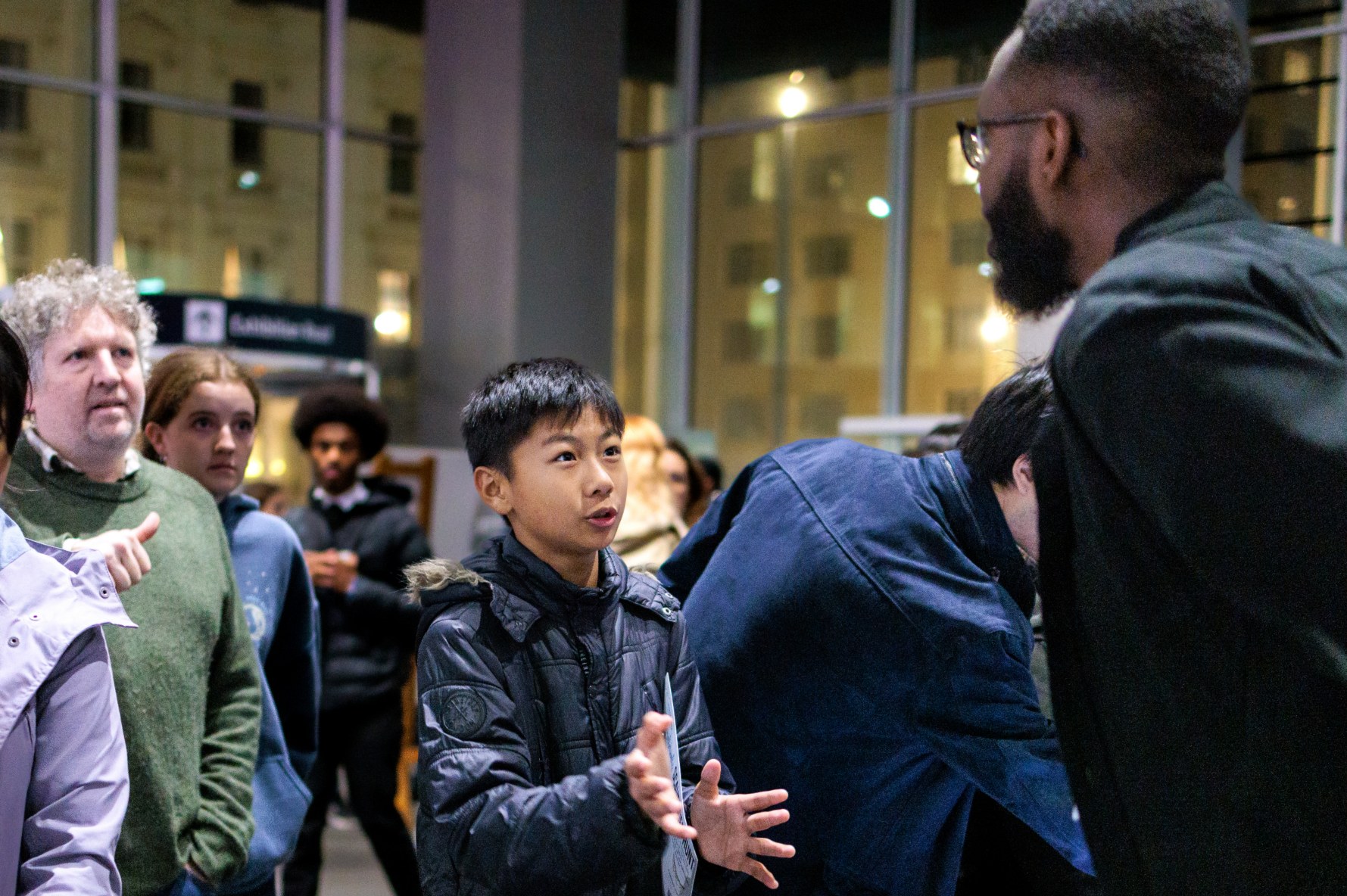 The Wilton-Ely group is actively involved in outreach activities, for example, at the Great Exhibition Road Festival and at Imperial College Fringe and Lates events. This all started with a stand presenting on CO sensing at the Imperial Festival 2014 and continued at the Imperial Design Fringe event, where we showcased our work on toxic gas detection, and at the Atoms Family Fringe event. Most recently, a PhD student in the group, Faysal Farah, presented his work on 'Lighting up cancer with nanoparticles' at the 'Tiny Science' Imperial Lates event in 2022 (below, image by B. Foster).